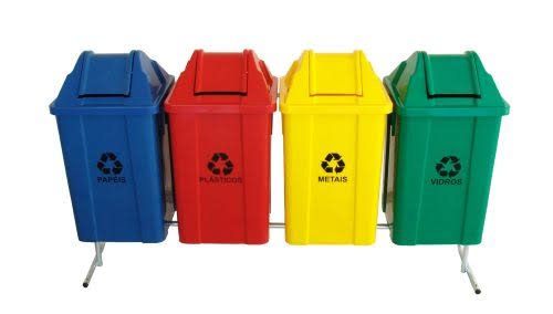Conjunto Lixeiras Coleta Seletiva com Suporte de Chão